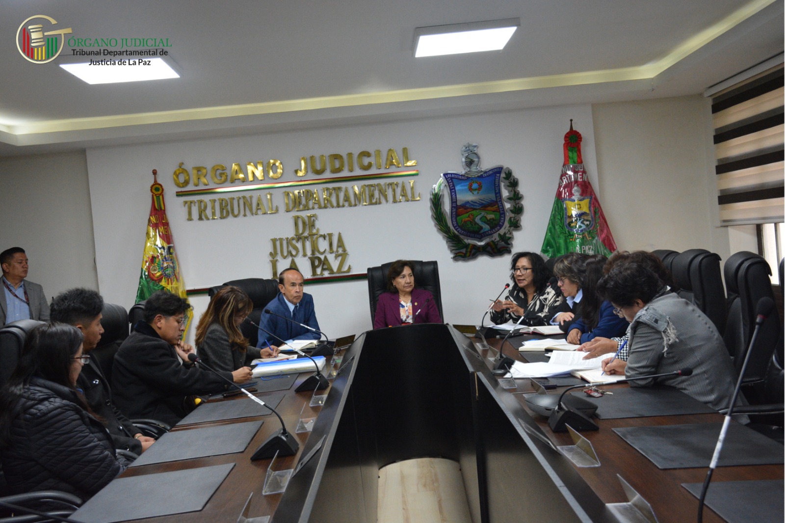 La Paz, 5 de febrero de 2026, (TDJ-La Paz).- En el Salón de Acuerdos, la Presidenta del Tribunal Departamental de Justicia de La Paz (TDJ), MSc. DAEN. Margot Pérez Montaño, junto ...