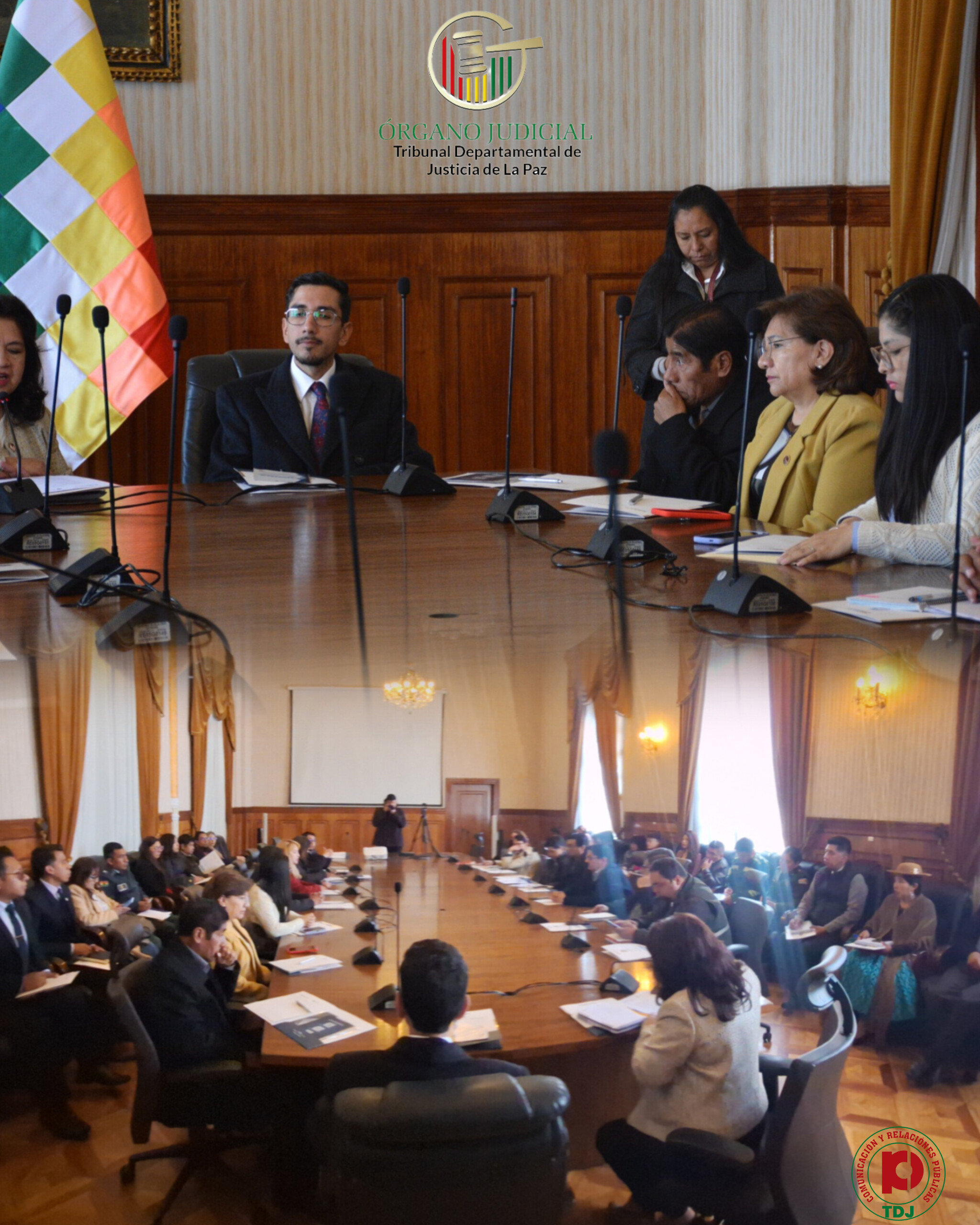 1400 | PRESIDENTA DEL TDJ INAUGURÓ LAS MESAS DE TRABAJO PARA LA RESTITUCIÓN FAMILIAR DE LOS MENORES DE EDAD | La Paz, 16 de septiembre de 2025, (TDJ-La Paz).- La mañana de hoy, en el Salón Rosado del Palacio de Justicia, la Señora Presidenta del Tribunal Departamental de Justicia de La Pa... | 2025-09-16 |  | |